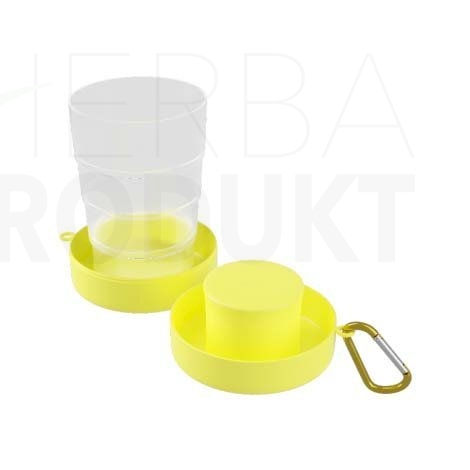 FIZZY EASY Travel Cup 220 ml to składany kubek do picia. Wyposażony jest w dodatkowy pojemnik i praktyczny uchwyt w postaci karabińczyka, dzięki czemu z łatwością zabierzesz go, gdzie tylko chcesz i przygotujesz napój z dodatkiem suplementów diety FIZZY EASY. Jest to doskonałe rozwiązanie dla osób ceniących sobie praktyczne rozwiązania i wygodę życia.