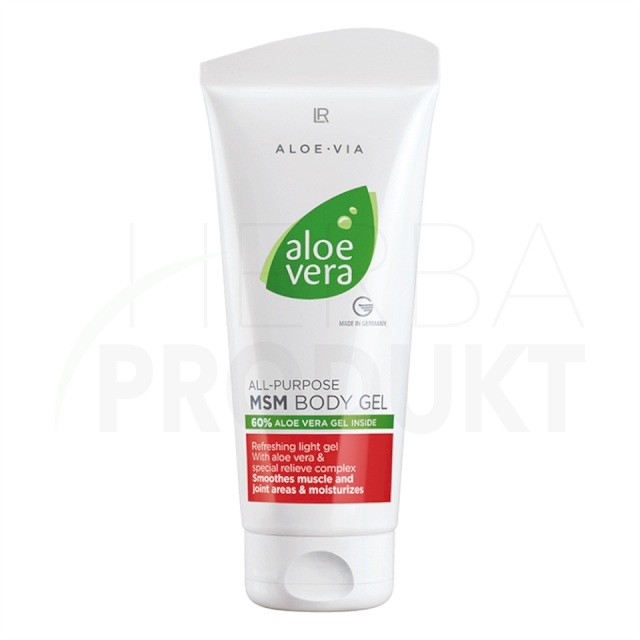 Aloe Vera MSM żel do ciała LR to aksamitny, szybko wchłaniający się żel do użytku zewnętrznego. Idealne uzupełnienie żelu do picia Aloe Vera Freedom. Zawiera 60% żelu Aloe Vera MSM, ekstrakt z mącznicy lekarskiej i kory wierzby. Nakładać na wymagające partie skóry. Wspomaganie wszelkich terapii ukierunkowanych na walkę ze zmianami degeneracyjnymi stawów lub kręgosłupa (rehabilitacja, fizykoterapia, kuracje farmakologiczne).